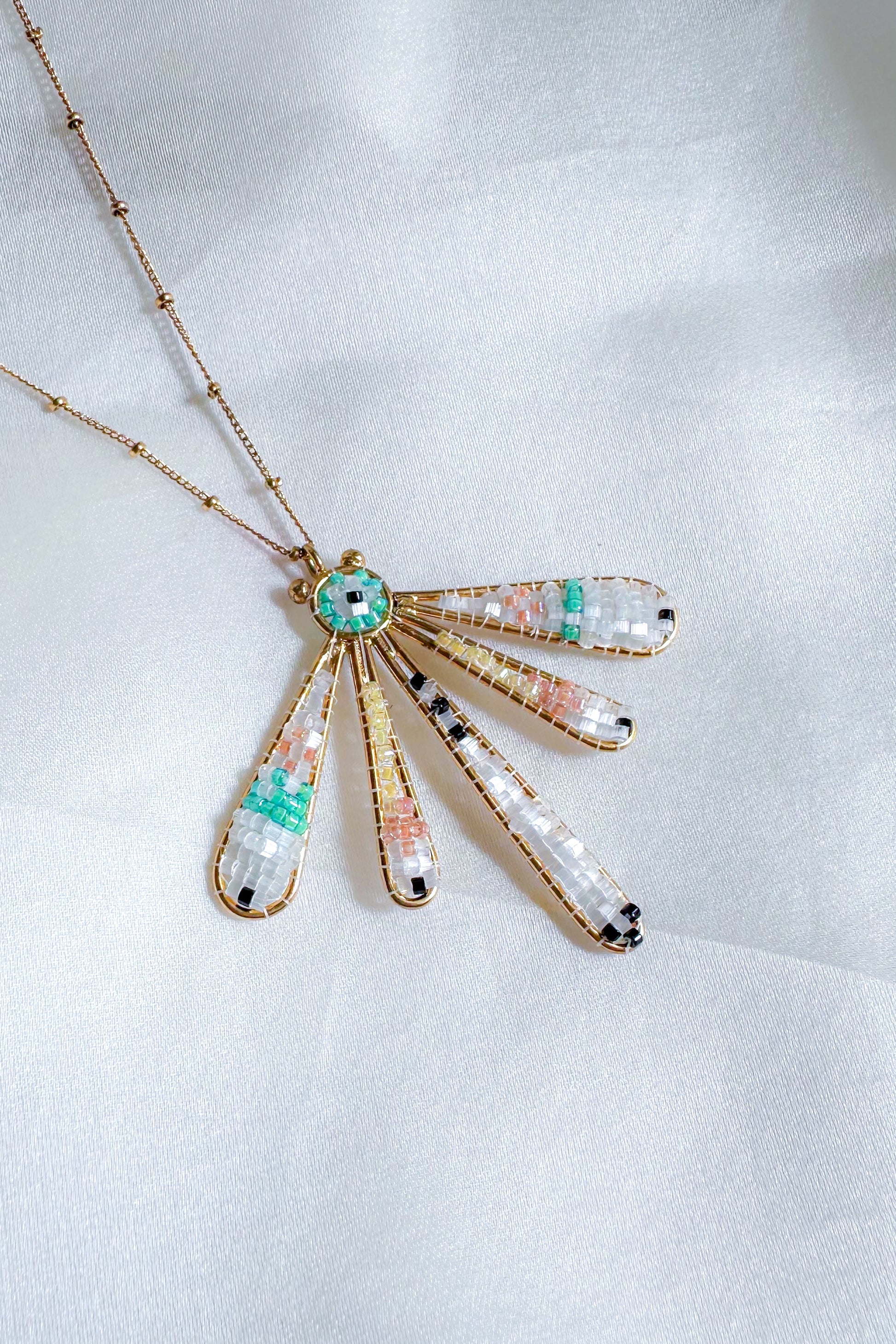 Inspired by the first light of dawn, the Aurora Bloom Necklace radiates a soft, ethereal glow. Crafted with delicate Miyuki Delica beadwork in pastel hues and set on a sleek gold-plated chain, this piece captures effortless elegance.