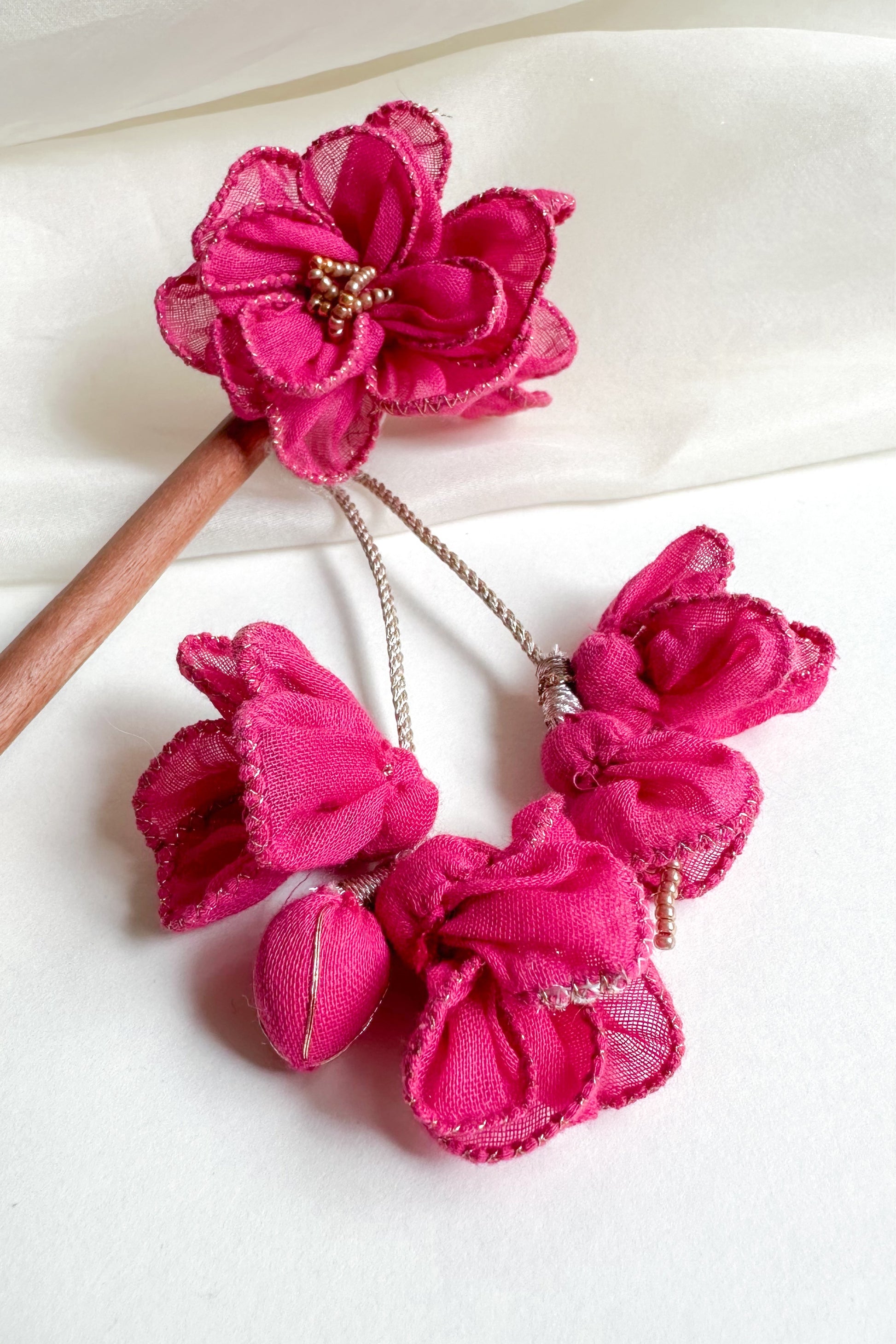 Crafted from lightweight cotton mull in a gentle pink hue and anchored on a natural wooden stick, Ira blooms with hand-stitched florals that whisper quiet beauty. Each petal is a reflection of patient craftsmanship and timeless femininity.