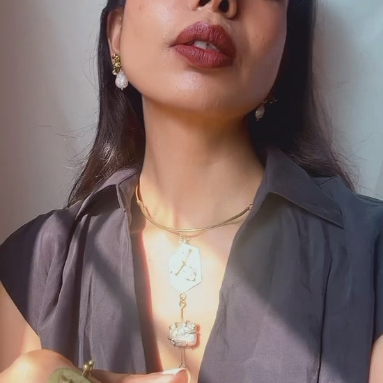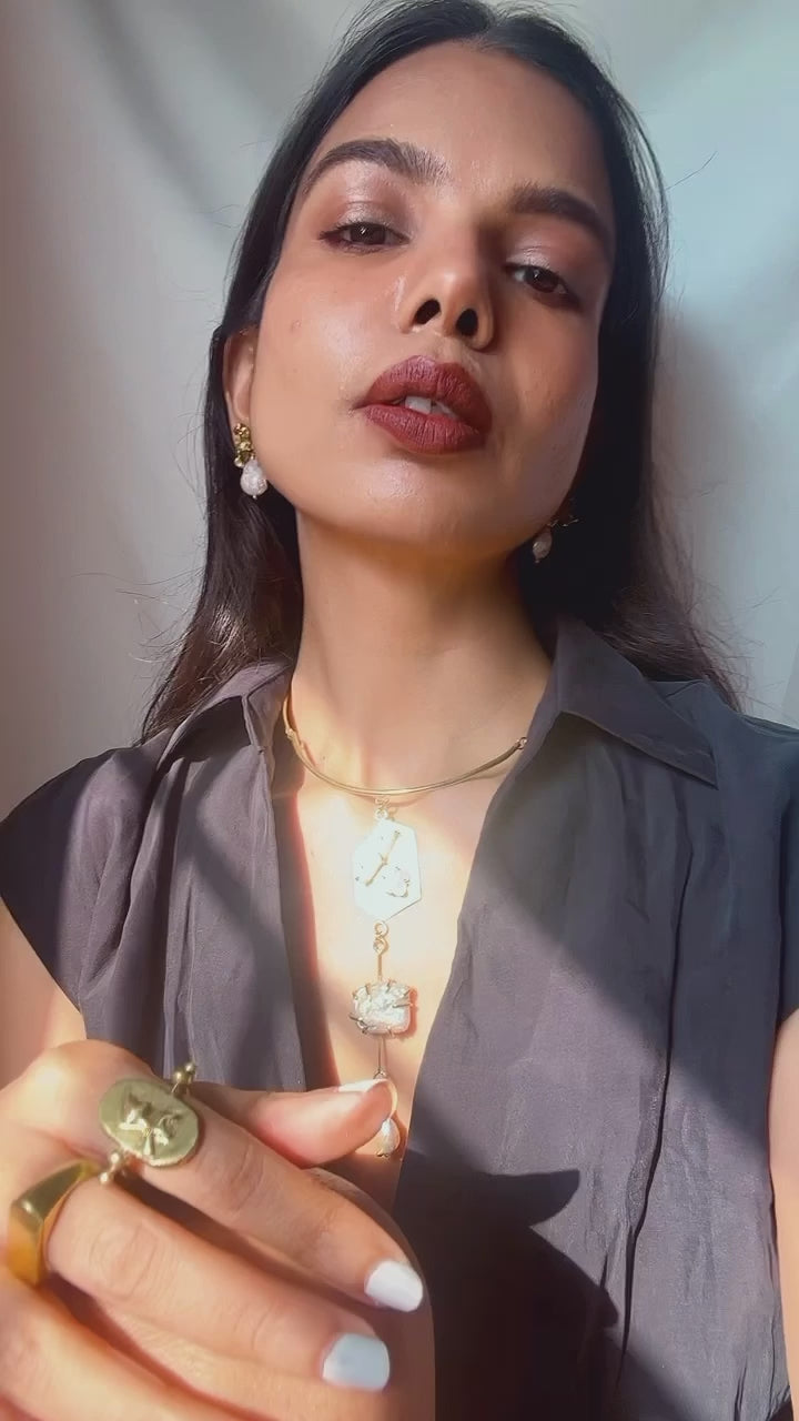 Make a bold yet elegant statement with our Ray Necklace, a stunning blend of organic charm and minimalist sophistication. Crafted in brass and adorned with luminous baroque pearls, this necklace celebrates the beauty of imperfect, natural forms.