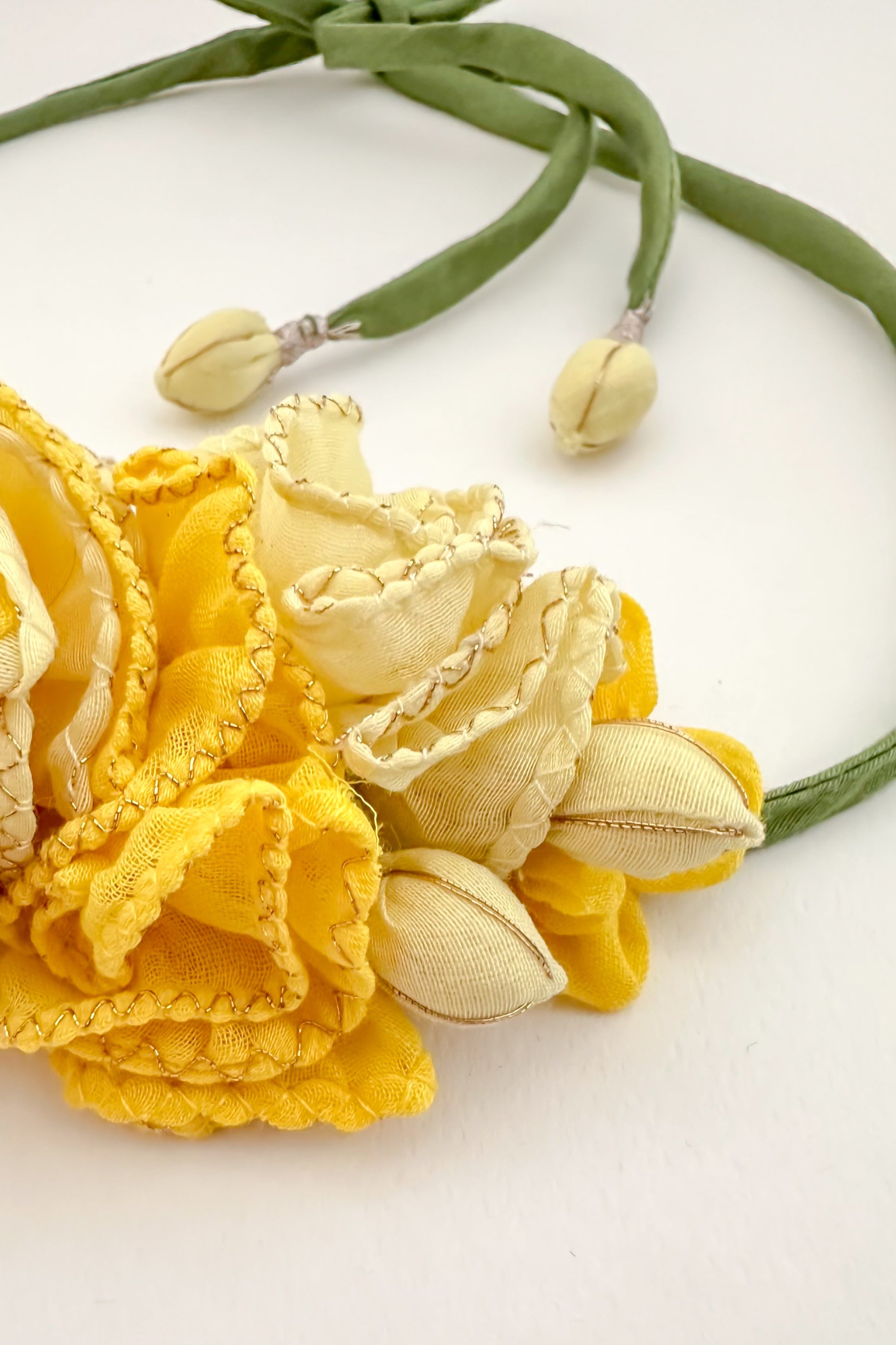 Sarson Gajra is an ode to the vibrant beauty of mustard fields, capturing their charm in a delicate, wearable form.